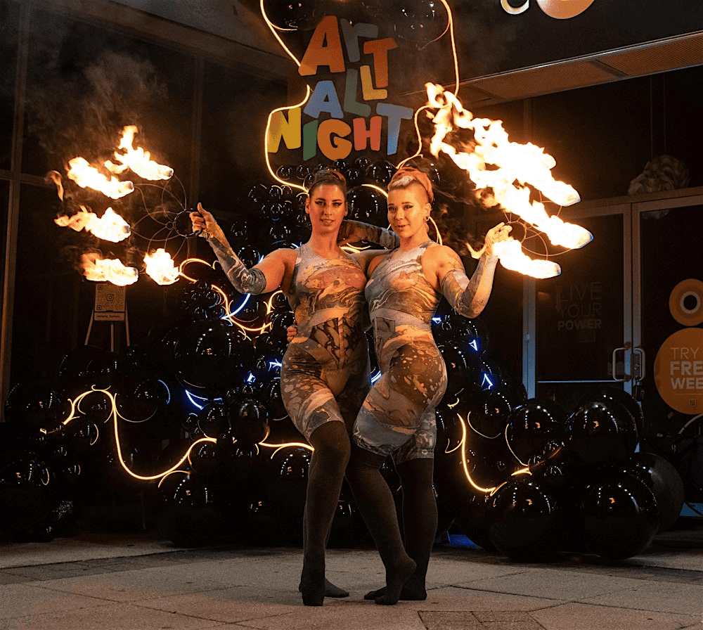 - 6:30 – 10:00PM: Live aerial dancers 📍Various locations
